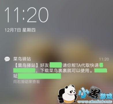 6.授权给好友后,你的好友就会收到菜鸟裹裹的通知短信,即你的代取快递的通知