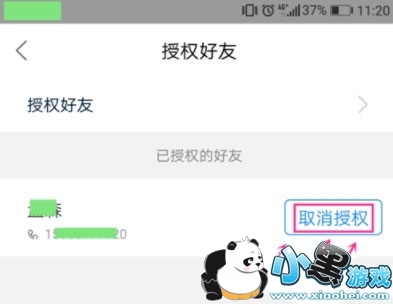 5.选择授权的好友后,在授权列表中即可管理授权好友,比如取消授权,如图所示