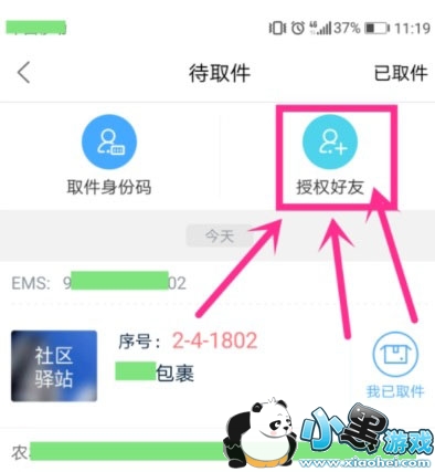 3.在代取件中,点击右上角“授权好友”,如图所示