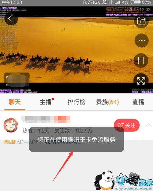 6.这个时候我们打开一个直播间,就会显示已经在免流播放了