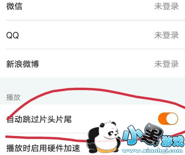 5、然后就把它右边的开关打开,使它从原来的白色变为黄色就可以了,这样就可以在观看视频的时候不用等长长的片头片尾了。