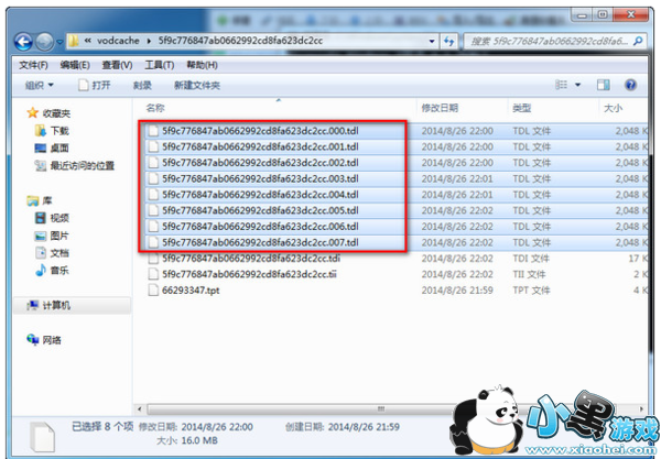 5、从电脑进入目录后,按下图所示,进入腾讯视频的节目缓存文件夹,在“vodcache”隐藏属性的文件夹下,可以看到许多。tdl文件,它们是视频的分段文件。