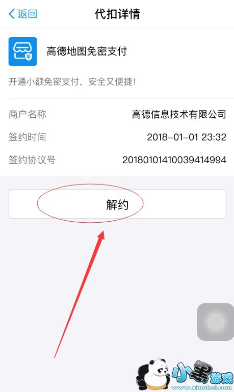 在代扣详情窗口点击高德地图免密支付下方的解约按钮,确认解约。