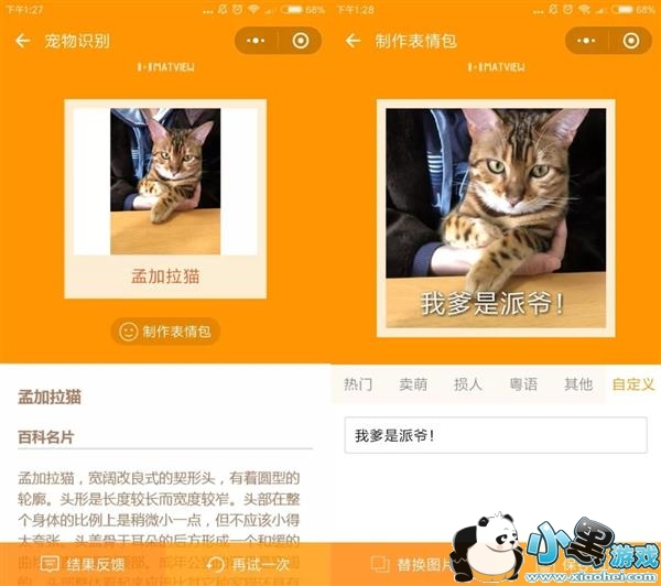 用“宠物识别”小程序不仅能猫的血统,还能一键生成表情包。