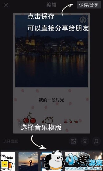 选择想要使用的音乐模版等待生成,完成后点击保存,也可以直接分享给朋友;