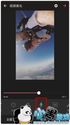 2.在下方栏中选择【高级编辑】,然后向右拉动选择菜单,选择【配音】选项,然后可以拉动时间轴来选择在哪个时间点开始加配音,选好时间点后,长按正下方的话筒图案则可以开始配音,松开图案则停止配音。
