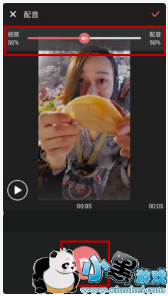 3.配音结束后,可以调整视频原声和配音音量大小比例,假如配音效果不满意还可以删除重配,配音完成则点击右上角的√即可!