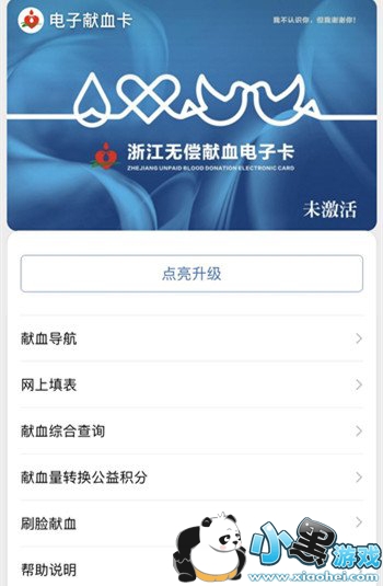 2. 接着点击下面的【点亮升级】完成献血电子卡激活;激活后再点击【刷脸献血】选项,然后确认自己的身份信息后点击勾选服务协议点击【同意】按钮;