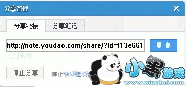 1、分享链接 点击分享笔记或者分享链接就会弹出一个分享设置的窗口,如图,点击开始分享就会生成一个http的链接,你可以把这个链接通过BBS或者QQ发给你的朋友们,即使他没有使用有道云笔记依然可以看到你分享的笔记内容。