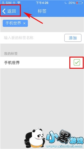 2、第一次添加还要写标签名,点击【添加】,在你添加标签名打上勾即可,点击【返回】。