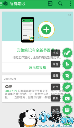 2.印象笔记首屏清新、简洁,让人心生好感。