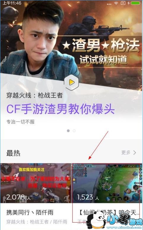 1、打开企鹅电竞app,在直播页面中找到你想观看的一个直播;