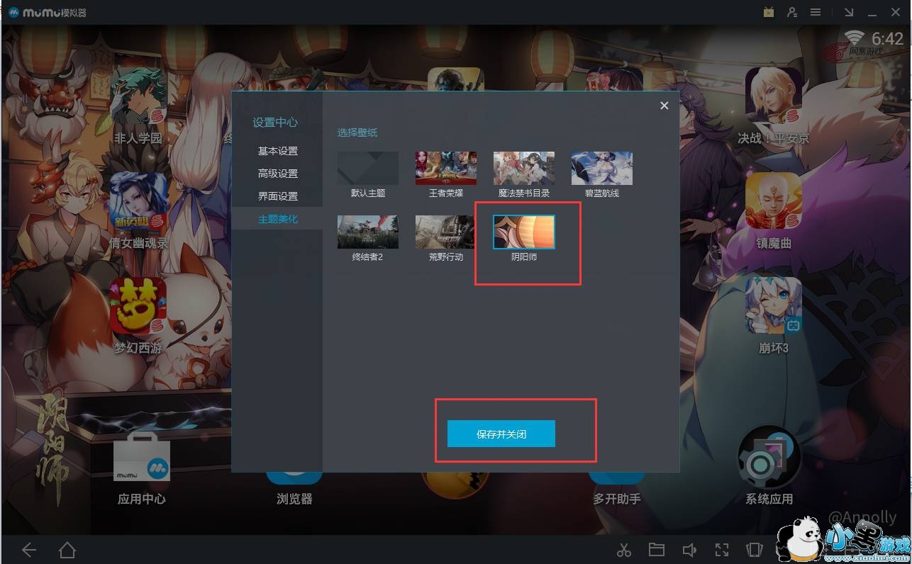 4.然后就能在模拟器右上角三道杠的“设置中心”-“主题美化”里面选择添加的主题壁纸。