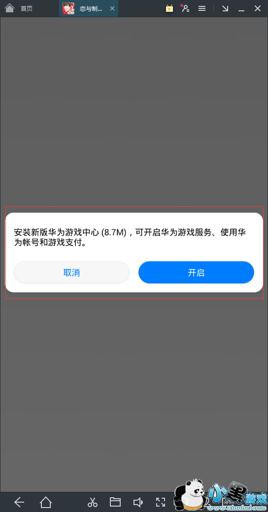 4.运行游戏,并在游戏弹出的提示安装华为游戏中心,模拟器下载完成后安装即可进行游戏。