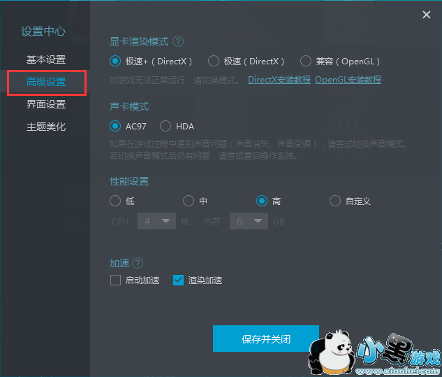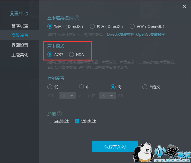 2.声卡模式切换才HDA,保存并关闭,重启mumu模拟器,重新打开游戏。