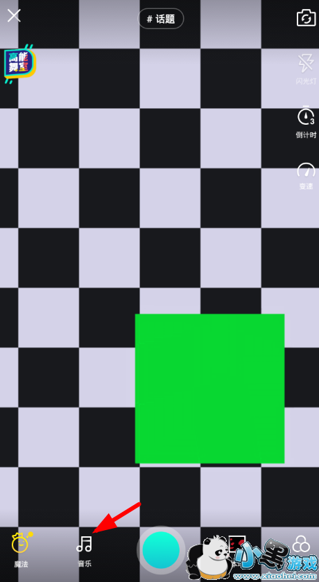 2、然后在视频拍摄页面里,选择下方的音乐图标,进入添加音乐的页面里,开通的QQ音乐曲库就在这里提供服务哦!