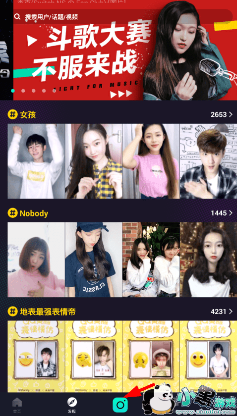 1、如果用户想要使用腾讯微视中的QQ音乐曲库,那么就应该先点击底端的拍摄按钮,进入到视频拍摄页面里,从而添加QQ音乐曲库的音乐。