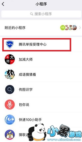 2、在“小程序”界面搜索“腾讯举报受理中心”并进入;