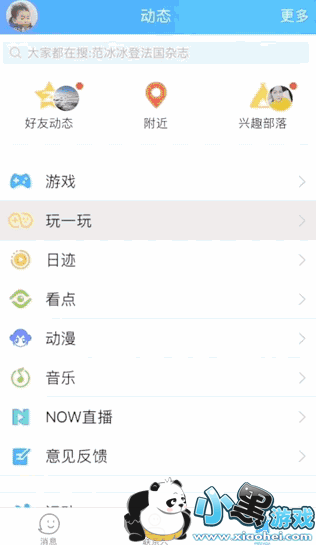 1、进入手机QQ,选择右下方“动态”按钮,在动态列表中第二行可进入“玩一玩”。