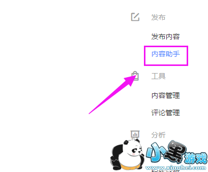 3.来到了百家号,我们在左侧找到“内容助手”,点击下,如图。