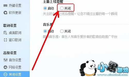 这里点击其他设置,看到主播上线提醒,点击关闭。