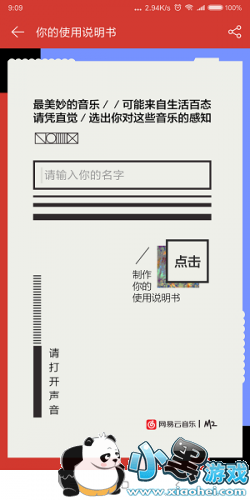 网易云音乐最近推出了一个网易云音乐使用说明书的玩法,只要我们输入名字就能游玩,那么我们具体怎么玩呢?下面就让小编给大家介绍一下吧。