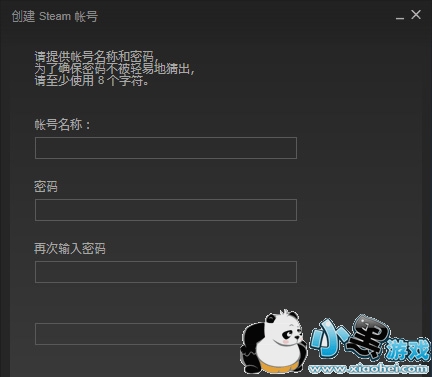 5、到“创建steam帐号”,根据要求创建符合要求的账号名、密码和邮箱信息。