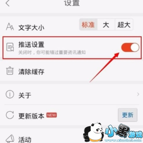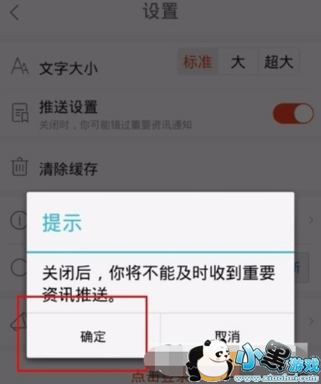 进入设置操作界面,有个“推送设置”按钮,这个就是“罪归祸首”,它默认状态下是开启的,所以才会不断收到推送信息,现在我们直接将它关闭。
