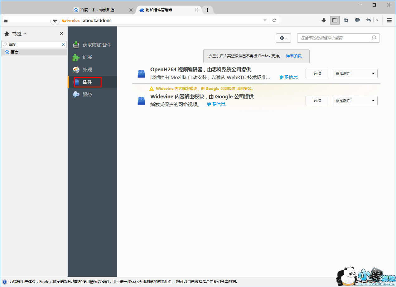 3、随后进入如下的附加组件管理器窗口界面,我们点击“插件”。