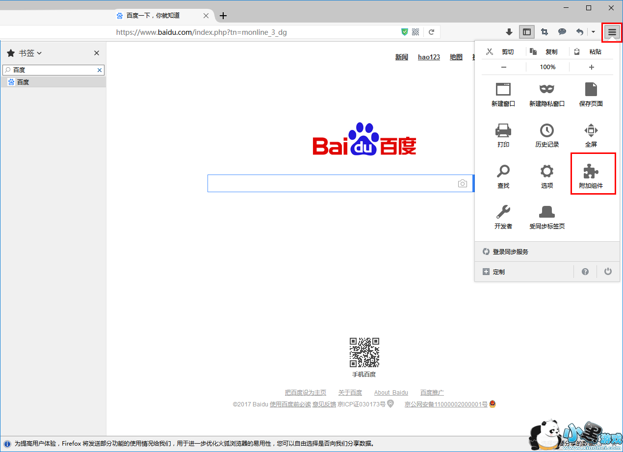 1、首先,我们打开火狐浏览器,进入软件的主界面。
