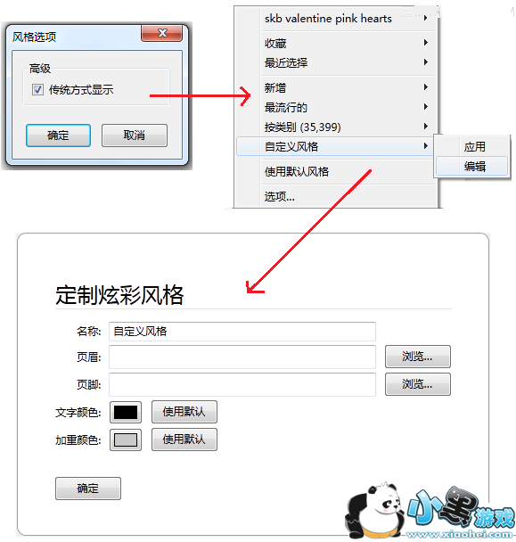 与之前版本相比,火狐皮肤2.0.0版操作起来稍微复杂一些。需要先打开“附加组件管理器”,找到“火狐皮肤”,点击“选项”按钮,勾选“传统方式显示”,确定后,点击火狐浏览器右下角的“火狐皮肤”按钮,你会发现扩展界面的显示风格回到了传统的菜单模式。 选择“自定义风格”-》“编辑”,就可以开始定制你自己的火狐“炫彩风格”了。选中你喜欢的图片,设定好浏览器页眉和页脚,调整一下文字颜色,不用成为绘图高手,更无须了解编码,10秒钟即可完成火狐皮肤的制作!最后,别忘了给你的作品起一个名字,点击“确定”