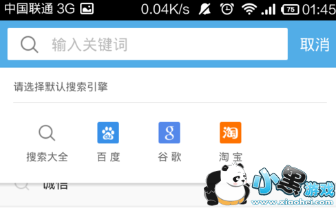 然后就会出现搜索大全,百度,谷歌,淘宝等,我们点击选择百度就可以了!