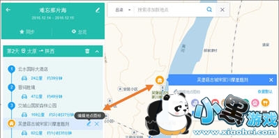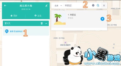 第二步:编辑路书在左侧面板中点击“搜索添加新地点”,之后在右侧的搜索框中依次添加当日的起点、途径点、终点。