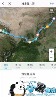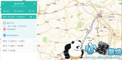 第三步:总览路书所有天的日程都添加完了之后,点击“总览”按钮,则可以总览多日行程,此时的路书总览中,已经自动为您做好了路径规划,并且计算出了总里程。