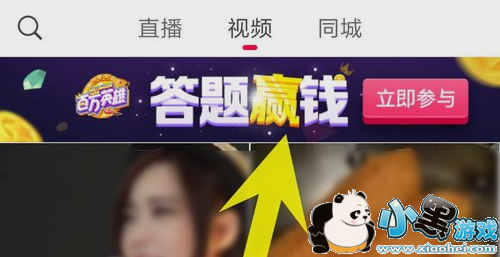 进入到火山小视频之后,我们可以看到页面最上方的百万英雄答题赢钱活动,点击进入。