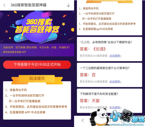 当然,为了网友们能快速、准确的成为“百万富翁”,建议网友们使用两台手机,一台手机打开直播平台参与活动,另一台手机则使用360手机助手“答题助手”,实时获取准准确的答案。