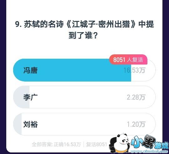 第九题,记得两句“为报倾城随太守,亲射虎,看孙郎。”“持节云中,何日遣冯唐?”,那就很简单!