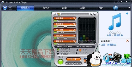3.3D 环绕音效:3D 环绕音效被人们捧的极高,特别是那些游戏发烧友们,打开这个选项后,可以控制音乐的3D立体声场的宽度和深度。