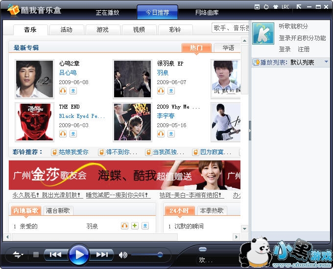 100万首歌曲及MV,每日更新:整合了互联网上百万首歌曲、MV、歌词和写真,每周更新百张以上专辑。