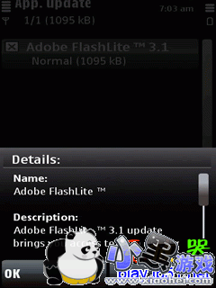 升级程序的大小为1095k,用户安装完毕即可直接使用,而无须重新启动手机。根据Adobe公布的Flash Lite升级说明显示,新版3.1将带来如下特性:
