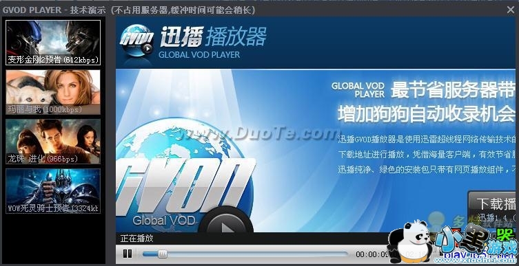 迅播gvod播放器 产品特性: