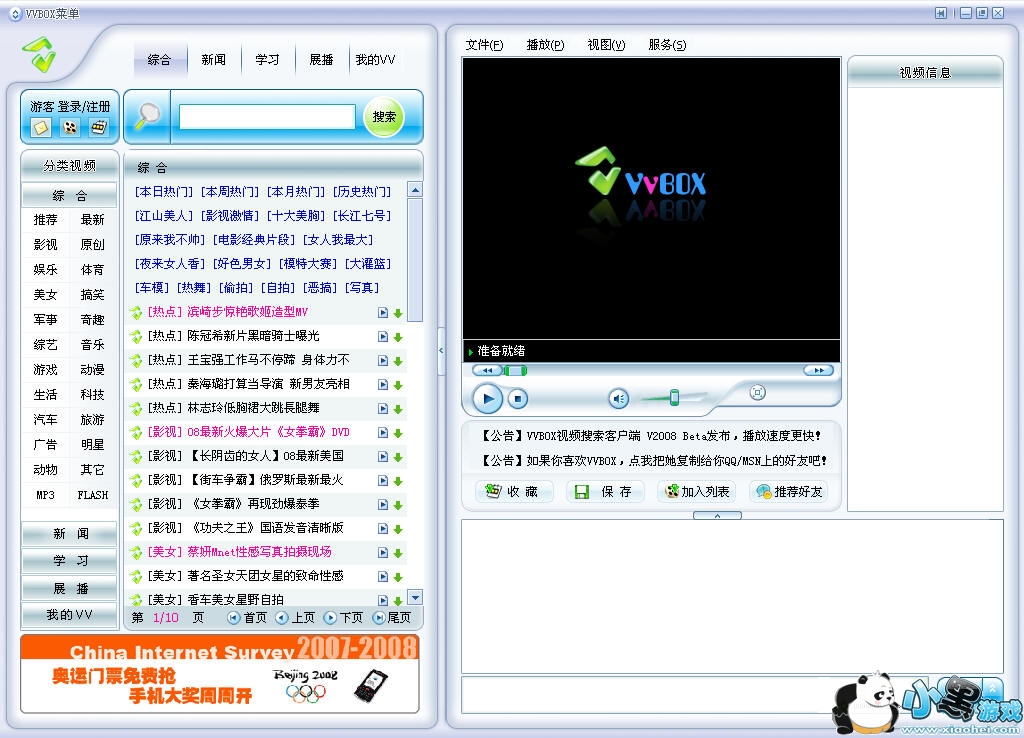 vvbox 播放器 绿色版:VVBOX是一款能够对互联网视频进行搜索、下载、观看(于一体)的集中式软件客户端。