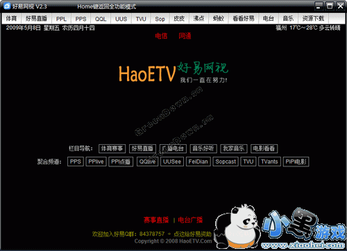 1、好易网络P2P研究机构精心打造的一款全新网络电视收看聚合软件,适用于所有Windows系统;
