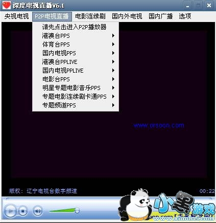 深度电视直播V6.1 绿色版:收录电视广播说明:电视列表(没注明PPS或PPLIVE的均为流媒体地址,请注意:流媒体的在很多教育网内连接不上):央视(共4线:15台官方地址,16台,10台,11台)港澳台(14台基于PPS,15台流媒体,12台广播(含音乐台内3台))体育台PPS(6台)广东(深圳10台,珠海1台,广州2台,潮州2台,广播全部8台)福建(5台电视,9台广播)浙江(29台电视,9台广播)江苏(20台电视,5台广播)江西(8台电视)山东(17台广播,6台电视)天津(8台广播)河南(10台广播,1台电视)中央广播(10台,全部官方地址)海南(2台电视,3台广播)吉林(1台电视)四川(15台电视)上海(18台电视,10台广播)河北(4台电视,4台广播,7台基于PPLIVE的河北台)湖南(5台基于PPLIVE的湖南经视,2台流媒体,1台广播)云南(5台电视)陕西2台21台电影连续剧等专台(如果地址被封,我可不保证可以连接,就如上次的上海有线通20台一样)韩国(18台),日本(3台),其他国家共20台PPLIVE类: 4台港澳台的 5台央视 20台省级卫视 17台国内电视 25台湖南湖北北电视广播其他(1台国内音乐广播,其他类31台等等)全部在360台以上