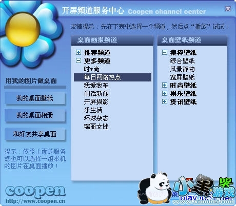 Coopen播放器是开屏传媒联合知名媒体推出的免费客户端软件,通过开屏客户端,您通过桌面就可以享受我们每天为您奉送的精彩生活、娱乐、体育资讯和绝美的桌面壁纸,让您的工作、学习和生活在不经意间增添更多乐趣,在闲暇时尽享简约图文生活。