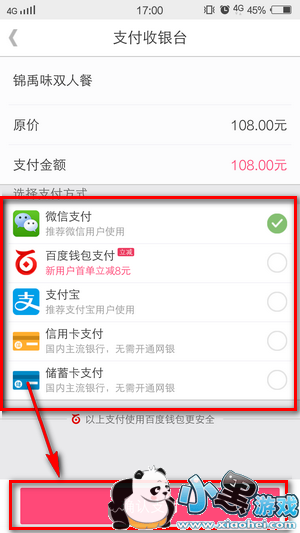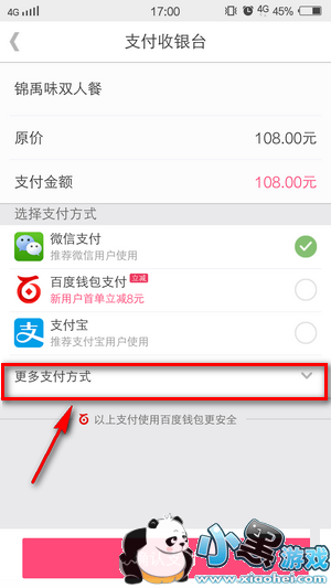 接下来就是付款界面了,点击“更多付款方式”你会发现还有很多付款方式可以选择,不用担心你微信或支付宝余额不足了