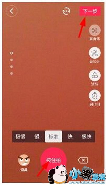 4、按住拍进行拍摄,拍摄好了点击下一步就完成长一点的视频录制啦!