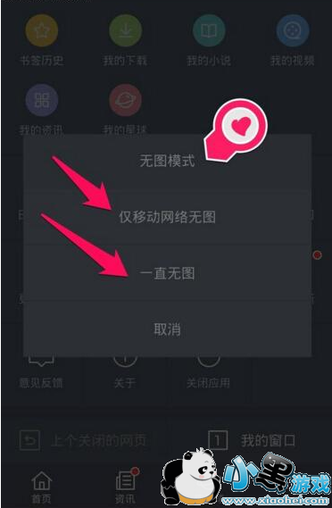 3、当你点击“开启无图”这个功能之后,会弹出一个对话框,而我们只需要选择其中会用到的仅移动网络无图这个功能。