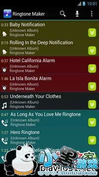 Ringtone Maker铃声剪辑一款铃声剪裁制作工具(Ringdroid 铃声制作软件的升级版),该加强版增加了非常实用的mp3文件淡入淡出功能。可以剪切手机中存储的音乐文件,也可以使用软件录音,对录制的声音进行剪裁,制成独有的铃声。软件支持音频格式为MP3, WAV, AAC, AMR。软件可将制作好的声音文件设置为默认铃声或警告音提示音,也可添加给某个联系人当做铃声!更新说明解决一个崩溃的问题