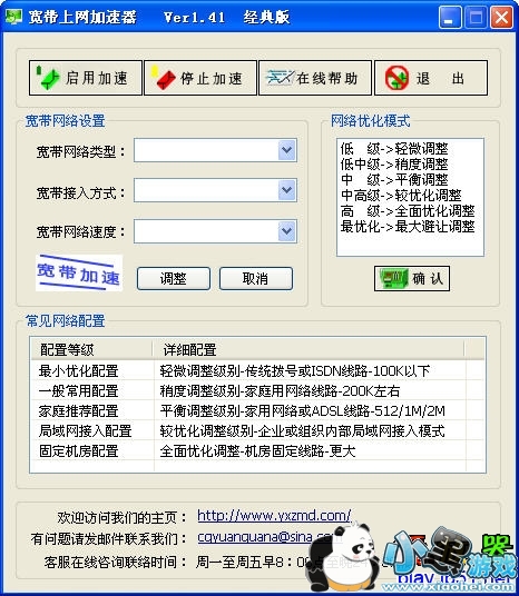 宽带加速器界面简单,配置容易,用户不需明白深奥而复杂的专业知识,只需根据自已电脑配置和上网方式等情况稍做设定几乎就可以一键让程序自动完成合适自已的配置。